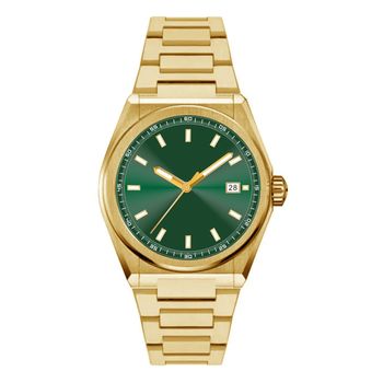 นาฬิกาควอทซ์ผู้ชายสแตนเลสชุบทองคุณภาพสูงหน้าปัดสีเขียวดีไซน์แบรนด์ที่กำหนดเอง