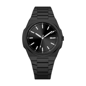 นาฬิกาควอตซ์สำหรับผู้ชายใหม่2025นาฬิกาสแตนเลสสตีลสีดำล้วนทันสมัยสำหรับผู้ชายปรับแต่งวันที่โลโก้ได้