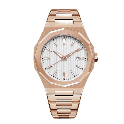 นาฬิกาควอตซ์สำหรับผู้ชายหน้าปัดเรืองแสงแบบอะนาล็อกมาใหม่นาฬิกาสีโรสโกลด์ออกแบบโลโก้ได้ตามต้องการ
