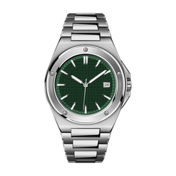 Orologio da polso classico personalizzato di lusso di alta qualità in acciaio inox giappone movimento verde quadrante orologio argento orologi meccanici per gli uomini